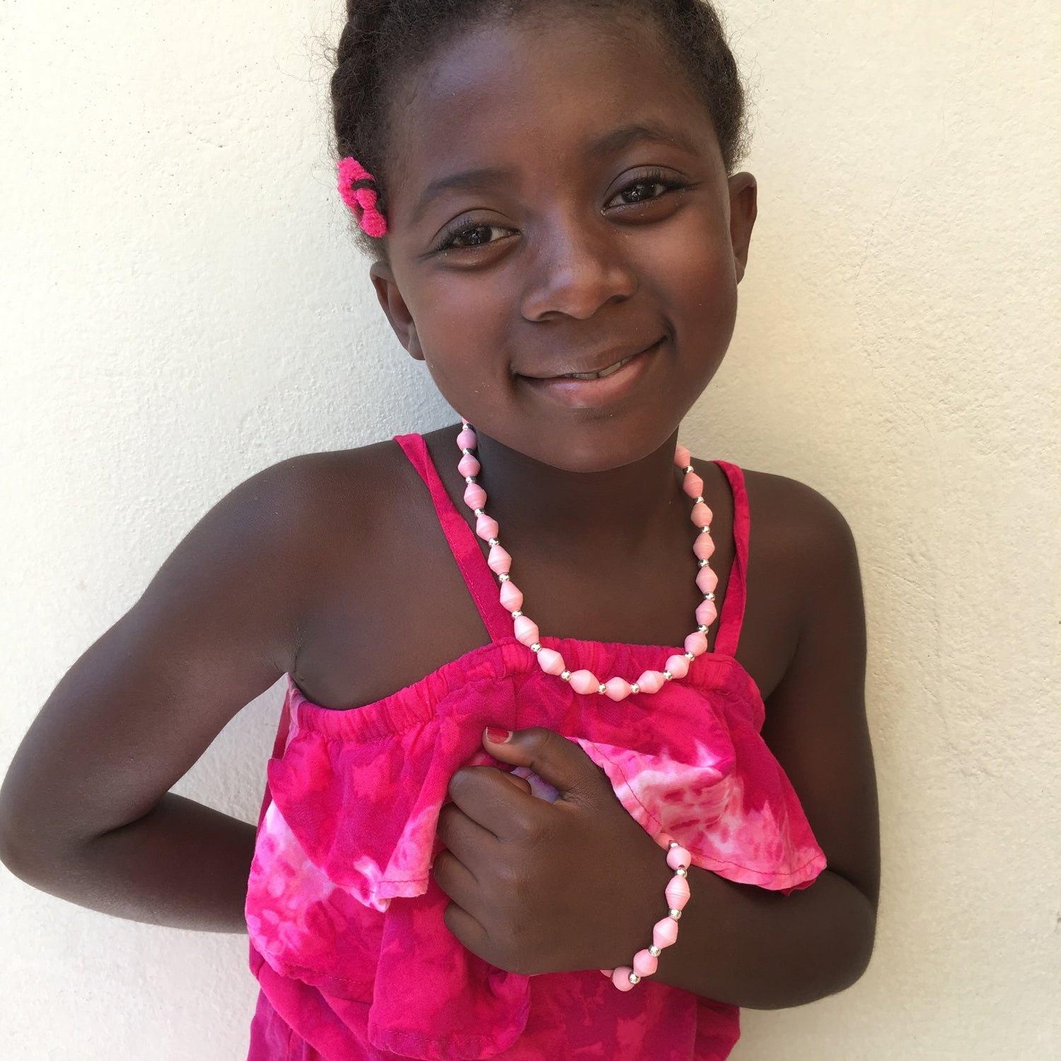 Ti Fi means "little girl" in Haitian Creole. Paper beads hand-rolled by our talented artisans. The Ti Fi set, made for young girls, also includes the Ti Fi Necklace.