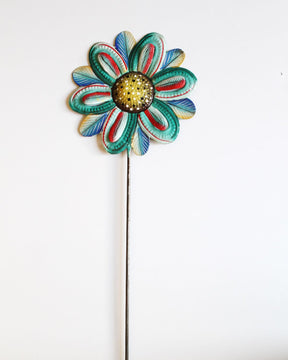 The Painted Flower Garden Stake is the perfect addition to any garden, patio, landscaping, or flower pot. Made from recycled 55-gallon oil drums in a small village in Haiti all from hand! The talented metal artisans cut, hammer, and chisel the metal into gorgeous pieces with amazing detail.